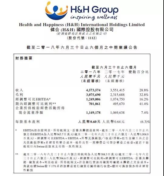 27日晚,健合集团公布2018年上半年的业绩,半年收入45.7亿元,同比增长28.8%,期内经调整可比纯利为7亿元,同比增长41.4%。在收入构成中,婴幼儿营养及护理用品业务收入为27.8亿元,同比增长33.2%,而以SWISSE业务为主的成人营养剂护理用品业务收入约18亿元,同比增长22.5%。
