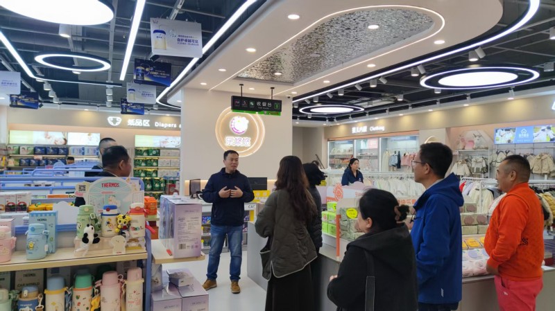 探访首站来到乐悠悠孕婴怡购店。在李永良总经理的引导下,参观团详细了解了乐悠悠的发展历程。店内货架整齐、陈列明亮,各类设施设置贴心周到。李总介绍,乐悠悠自成立以来始终以会员需求为核心导向,门店二层设会员服务中心、三层设母乳喂养中心,大部分服务均免费向会员提供。谈及会员活动,李总如数家珍地分享了初期活动中的挑战与会员认可,正是会员的支持推动乐悠悠发展至今。