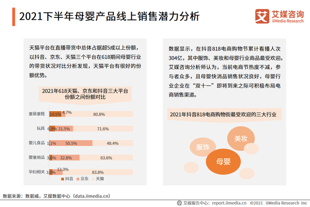 数据显示,从中国母婴快消品市场线的销售市场状况来看,线下市场的总体占有率约为80%,近两年中国母婴快消品全渠道销售额平均增速为5.6%,线上渠道销售额增速为13.9%,线下增速为4.4%。线上销售渠道优势不断突出。在2020年的6月和11月,受“6.18”和“双11”的影响,母婴快消品的线上渠道销售额市占率分别从约20%提升至32%和39%。