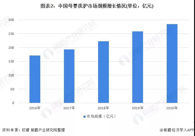 近年来,受益于母婴市场消费升级、品类创新及电商市场的快速发展,我国母婴洗护市场规模持续稳定增长。2020年我国母婴洗护品市场规模达284.4亿元,同比增长10.0%,2016-2020年CAGR为13.61%。